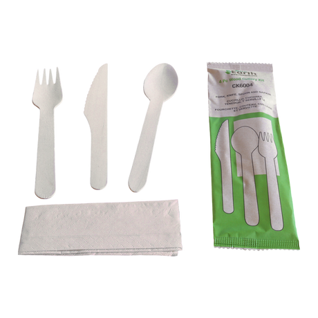 RiteEarth - Wooden Cutlery 4/1 Kit (Knife + Fork + Spoon + Napkin), Pack of 250 - CK6004